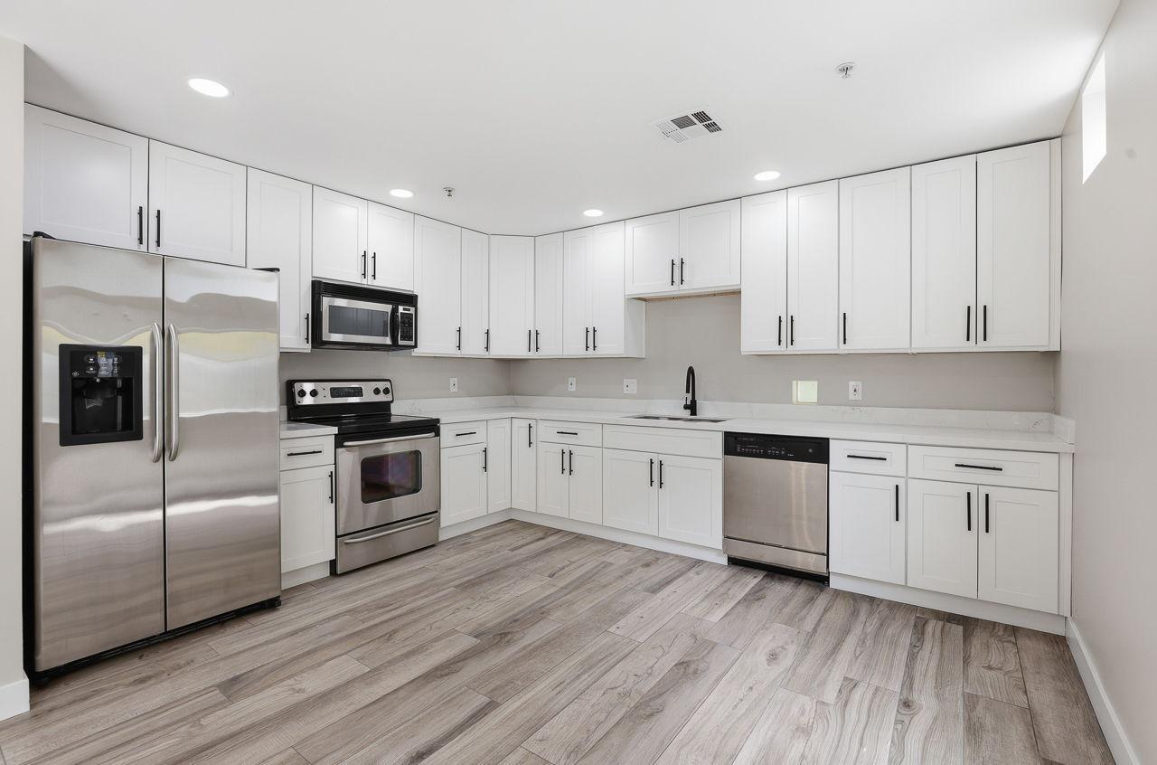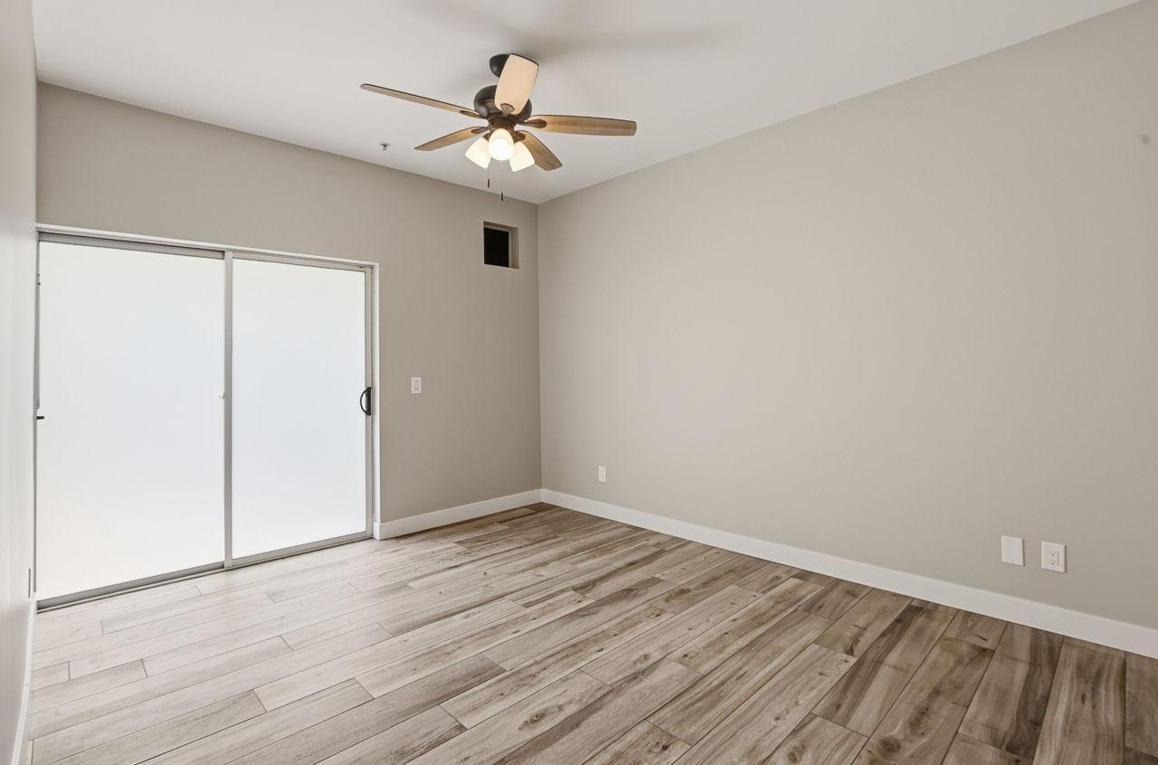 Primary Bedroom has private patio access, ensuite with walk in closet and level entry shower. Secondary bedroom (perfect for a home office or den) has separate entry from the street with convenient 2 hour parking just steps away! Full Guest Bath and Private, In-Unit Laundry. Large, Gated Patio with Shade Tree.