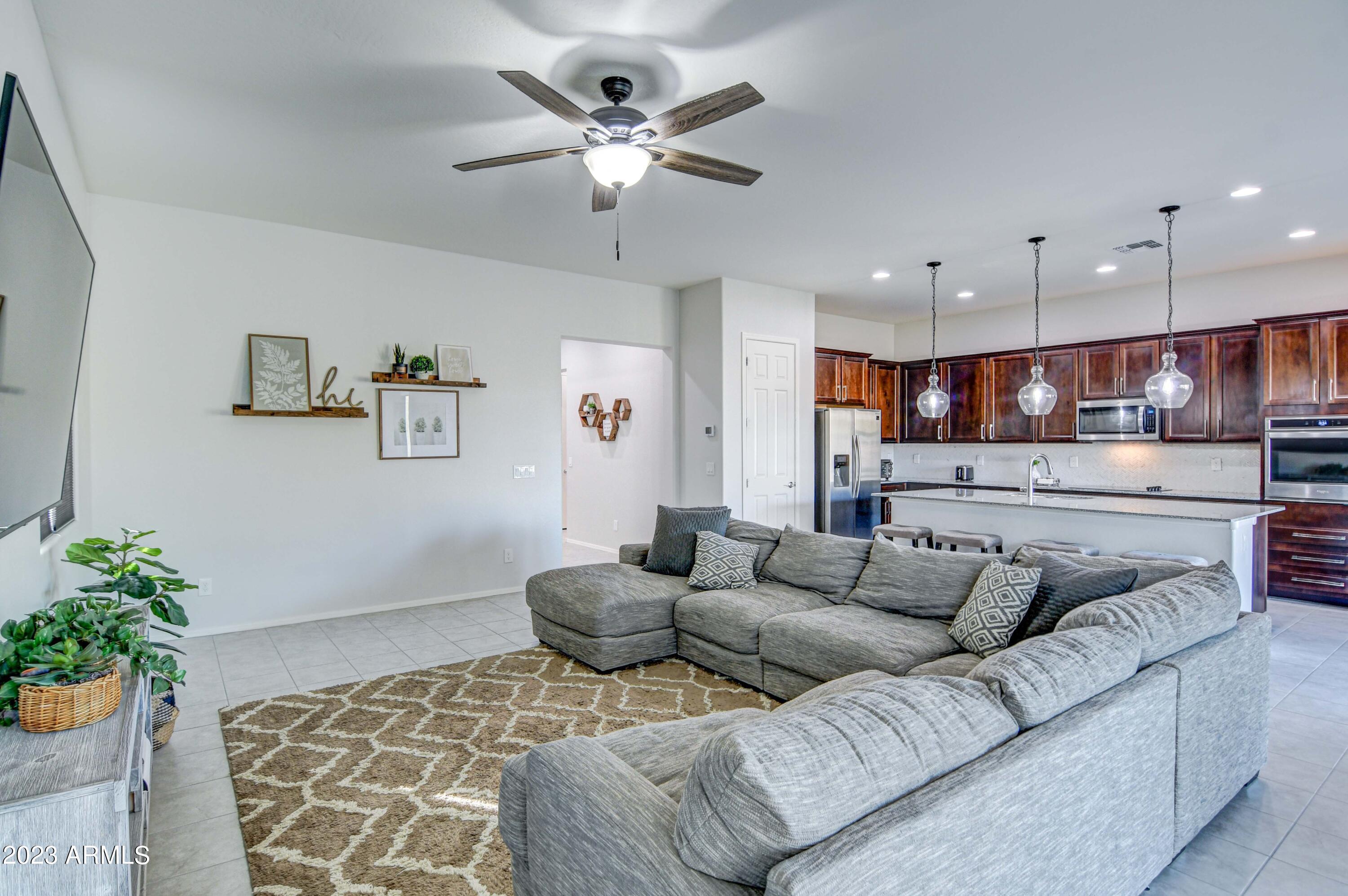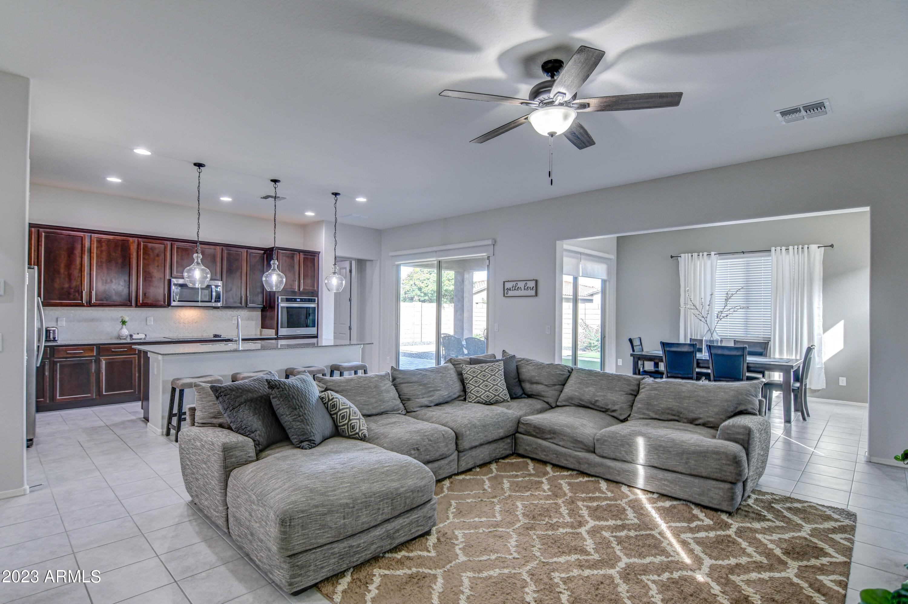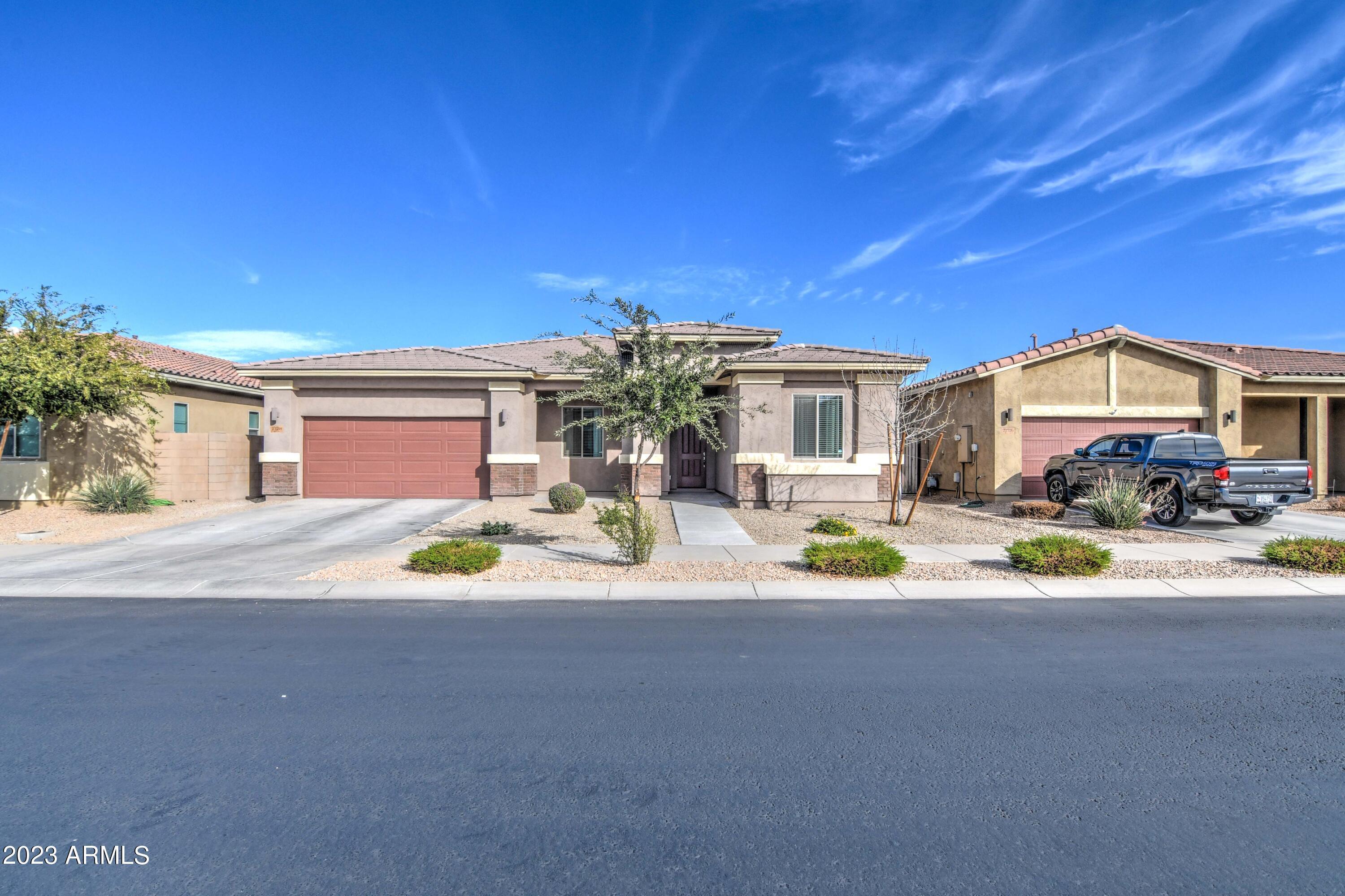 OPPORTUNITY AWAITS TO LIVE IN MERIDIAN QUEEN CREEK WITH THIS HOME SITUATED JUST WALKING DISTANCE TO THE COMMUNITY POOLS AND ELEMENTARY SCHOOL. ENJOY A TRUE 3 BEDROOM 2.5 BATHROOM WITH A DEN THAT HAS A CLOSET SO IF YOU NEED THE SPACE THERE IS AN EXTRA ROOM YOU CAN USE AS AN OFFICE OR PLAYROOM. OPEN GREAT ROOM AND FORMAL DINING AREA WITH A OVERSIZED BREAKFAST BAR/ISLAND AND STAINLESS APPLIANCES - OWNER IS LEAVING REFRIGERATOR AND WASHER AND DRYER BEHIND FOR NEW OCCUPANTS. 3 CAR GARAGE SO BRING YOUR TOYS - LANDSCAPE IS DESERT WITH ARTIFICIAL TURF FOR A EASY LIFESTYLE - READY NOW FOR MOVE IN - PROFESSIONAL PICTURES COMING