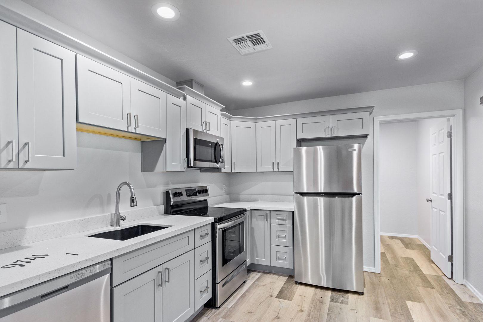 Remodeled 2 bedroom in Phoenix! - NEWLY RENOVATED 2 bedrooms and 1 bathroom, AVAILABLE NOW! The unit has been beautifully remodeled with all new floors, a BRAND NEW KITCHEN, modern shaker cabinets, stainless steel appliances, new countertops in the kitchen and bathroom! This is located near South Mountain and conveniently located near tons of restaurants, shops and more! Tenant pays all utilities, Admin fee 2%