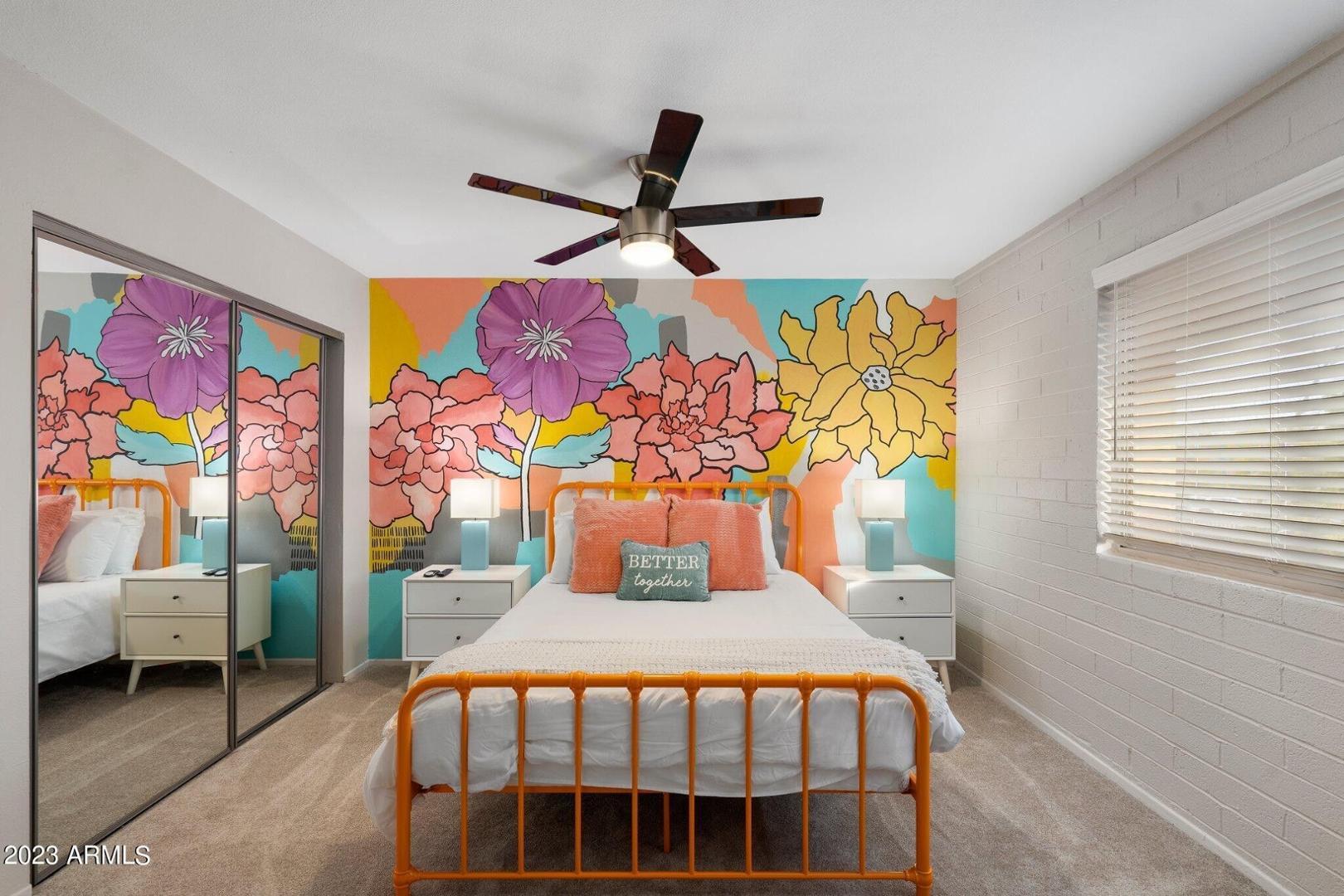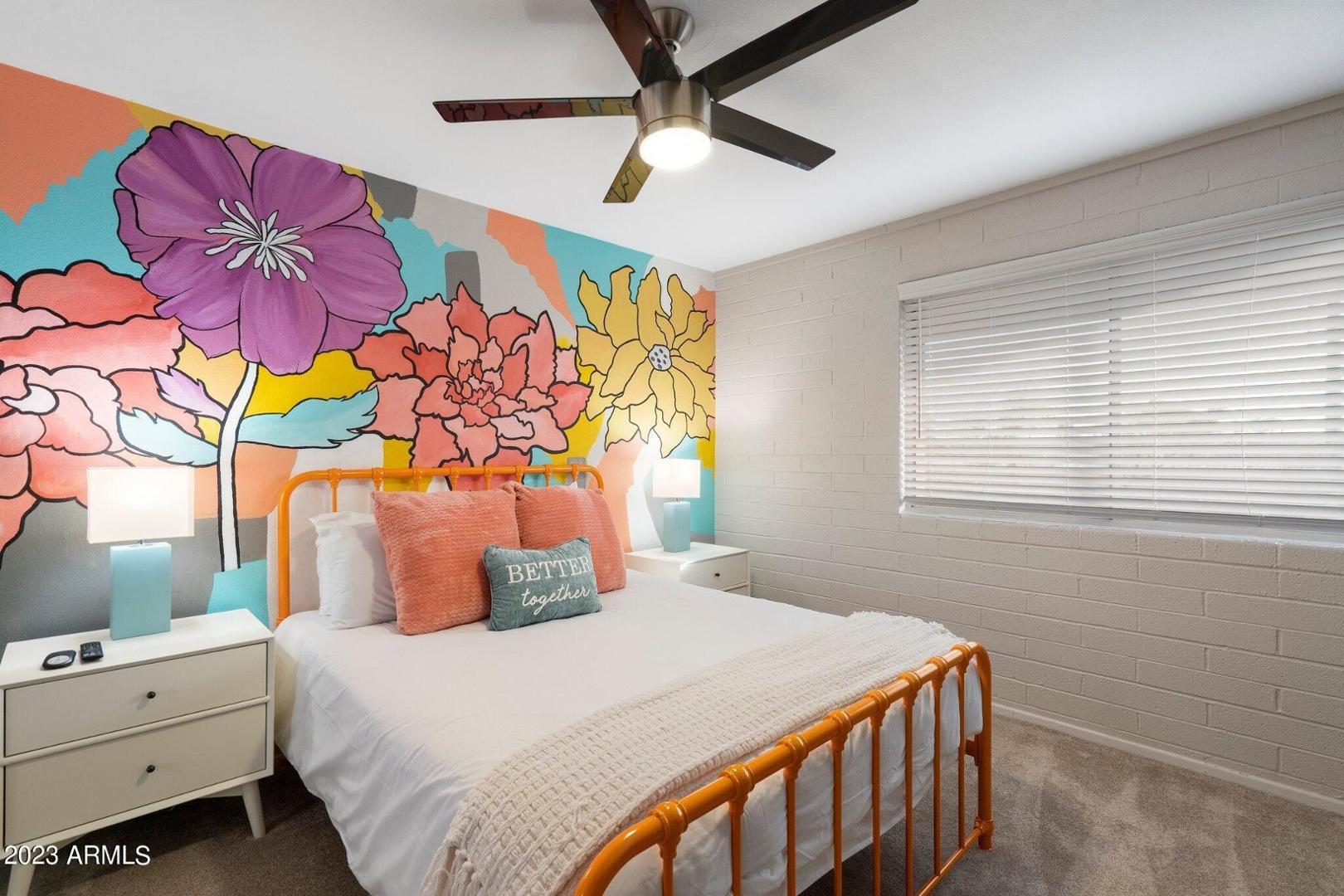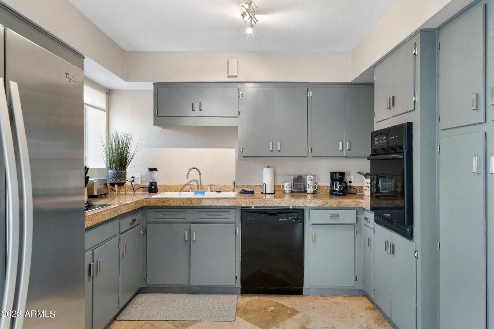 Great Central Phoenix 2BR two-story end unit with great outdoor patio, and easy access to community pool. Two larger bedrooms have lots of closet space. Pleasant interior with travertine and wood flooring. Kitchen has freshly painted cabinets, an electric cooktop, wall oven, granite tile counters, pantry and refrigerator. Full size washer & dryer included. Half bath and laundry downstairs. Bathroom has two sinks and granite counters. Amazing backyard (largest in the complex) has a large paver patio, mature shade trees and plenty of room to enjoy the BBQ. Reserved parking. Also, available furnished $1995.